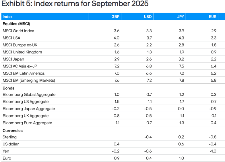Vir: JP Morgan Review of markets over September 2025